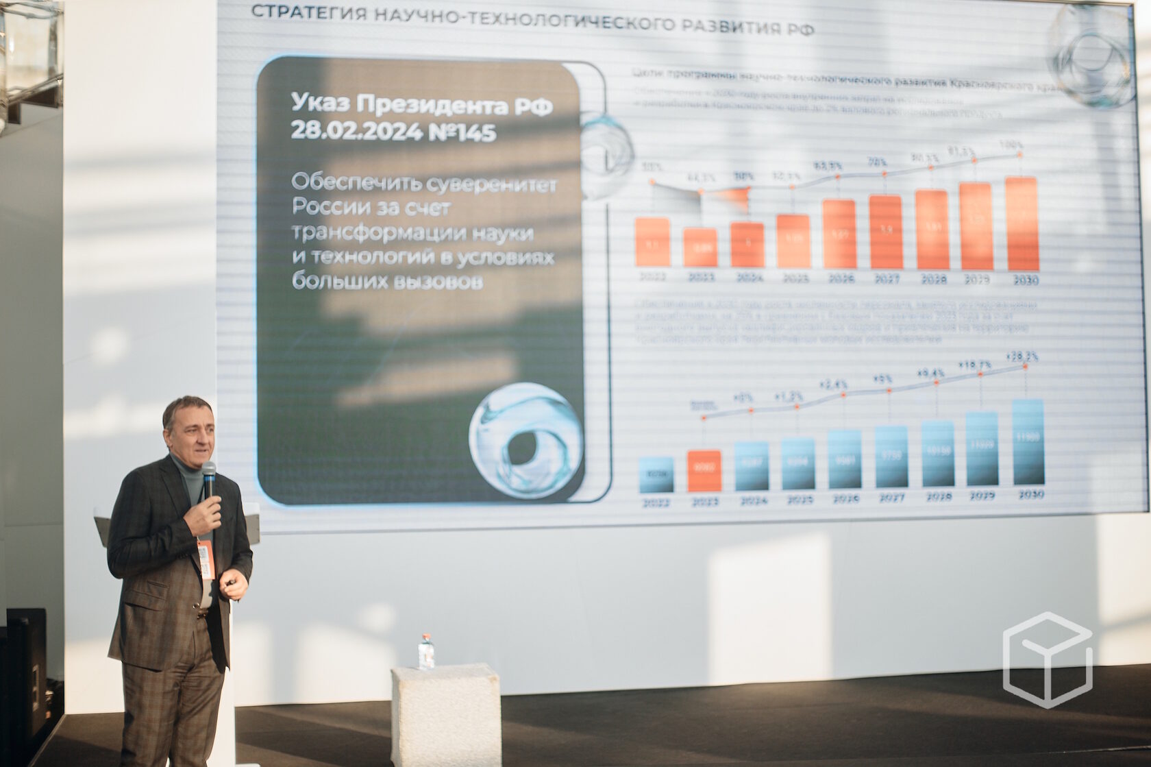 Логика программы выстроилась от общего к частному: от обзорных докладов о состоянии федеральной повестки и статуса национальных проектов технологического лидерства до выступлений индустриальных заказчиков, которые рассказали о том, как бизнес принимает решения о согласовании направлений НИОКР и выборе подрядчика.